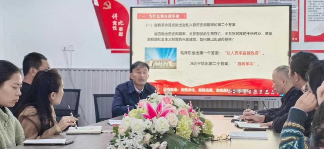 沈荣林以习近平总书记关于党的建设的重要思想的“十三个坚持”为切入点,聚焦“坚持以党的自我革命引领社会革命”,从“为什么要自我革命”“为什么能自我革命”“怎样推进自我革命”等三个方面,深入解读了党的自我革命这一重要思想的丰富内涵和时代意义,他结合丰富的理论知识和生动的实践案例,密切联系附校工作实际,引导大家要牢记“两个永远在路上”,强化全面从严治党政治责任。要以自我革命的精神激发动力,创先争优,深入推进“一融双高”,为学校“双一流”创建和特色鲜明高水平大学建设贡献力量。