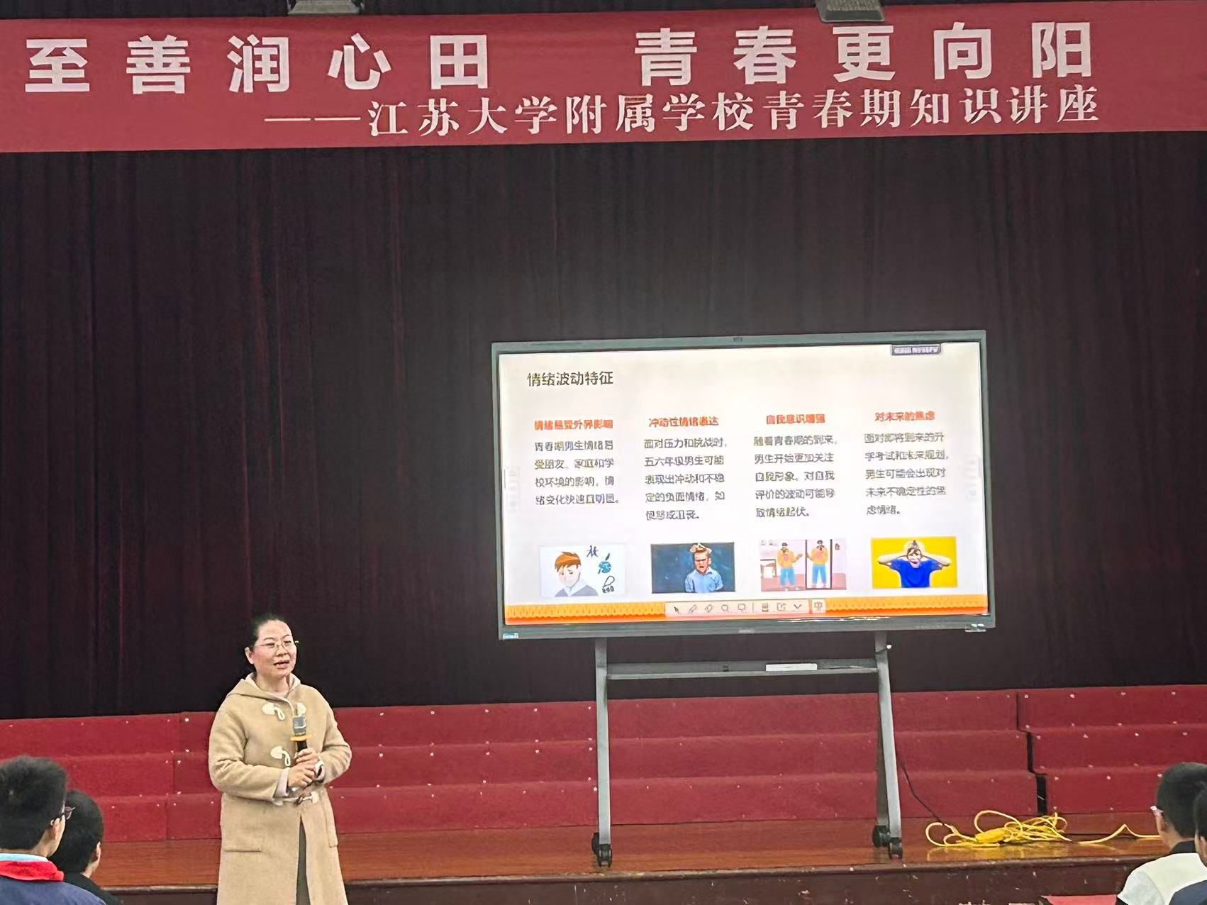 近日,附属学校面向五、六年级学生举办了主题为“至善润心田 青春更向阳”青春期知识讲座,旨在帮助学生科学认识青春期变化,树立积极健康的成长观念,促进身心全面协调发展,职工医院尹筱莹医生主讲。