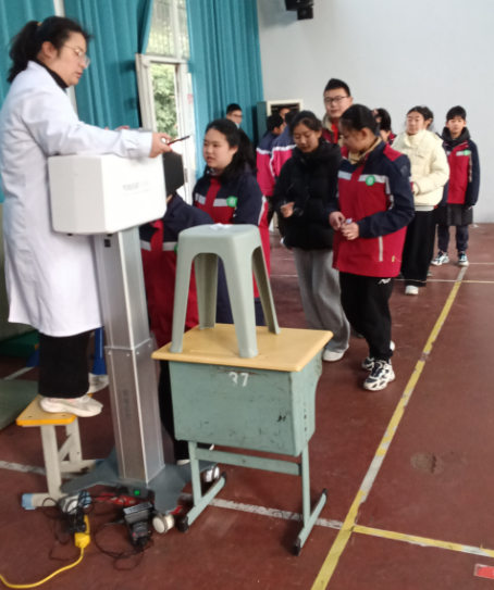 本次检查包含“视力筛查”和“屈光筛查”两项内容。眼科医生借助专业设备为每位学生进行全面细致的检查,精准记录视力数据。