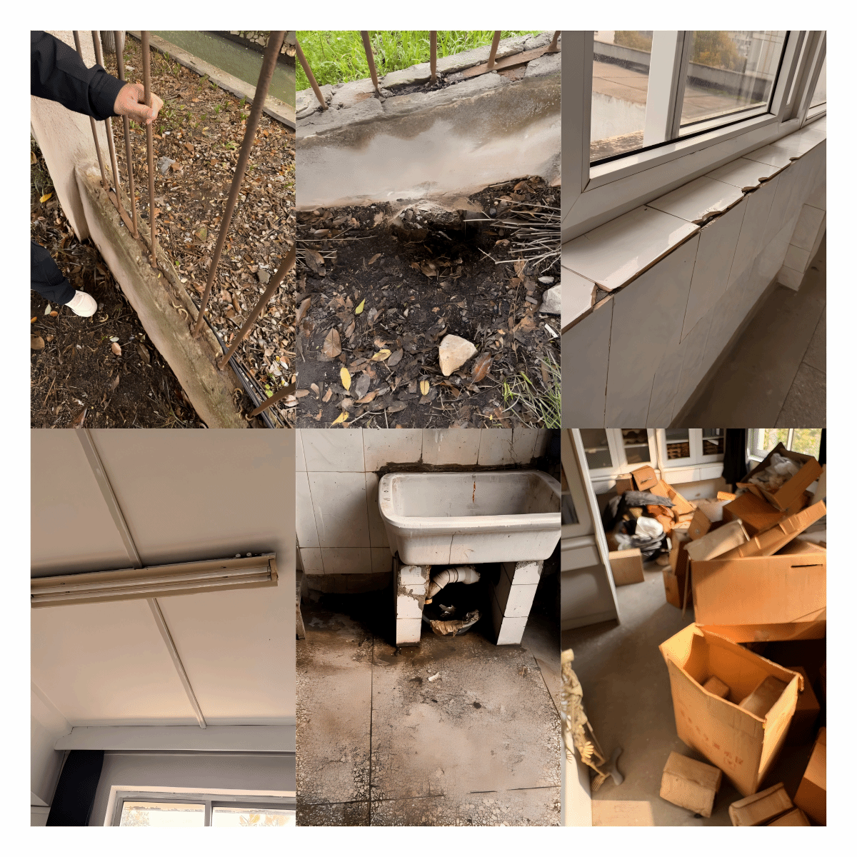 1.四楼窗台瓷砖安全隐患: